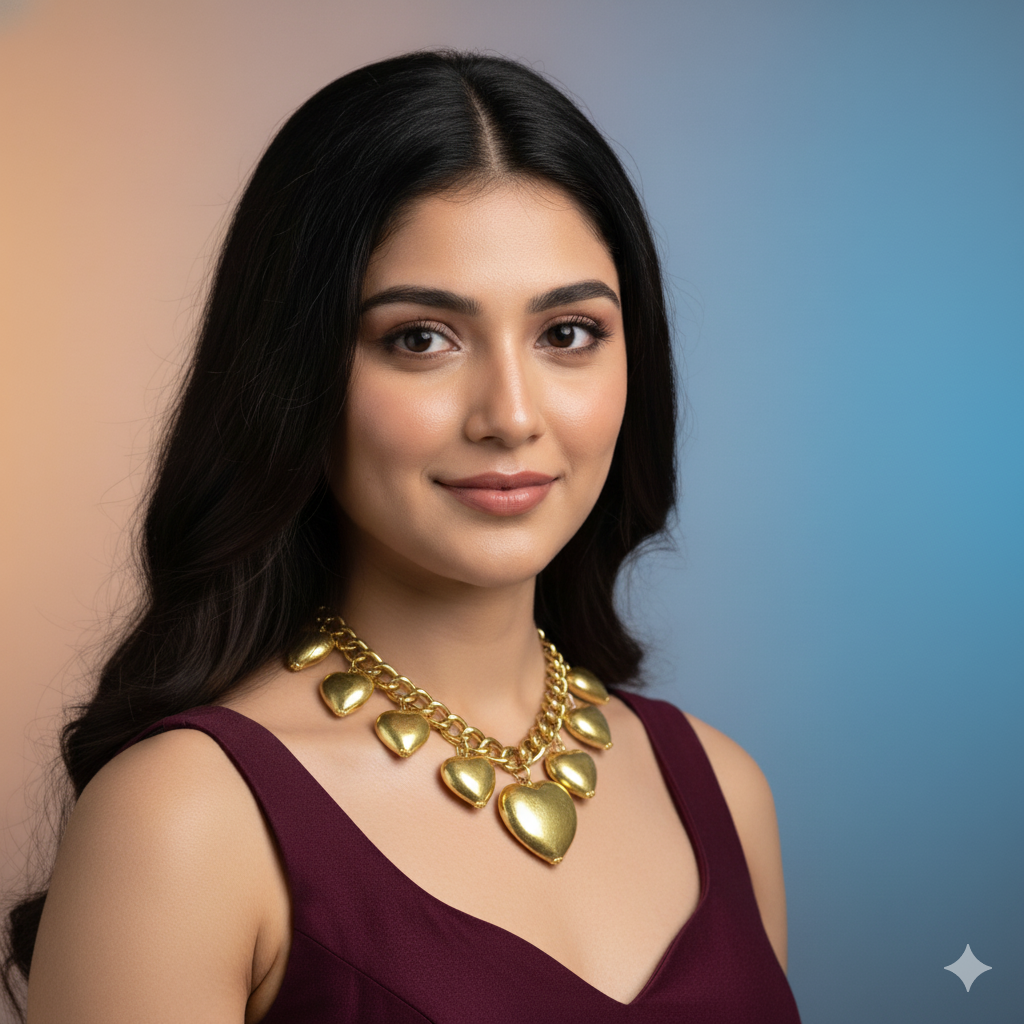 Elevate your elegance with our Amoura Combo, a stunning combo featuring a bold gold-tone heart charm necklace and matching earrings. Perfect for making a statement of love and luxury, this set radiates timeless charm and sophistication.