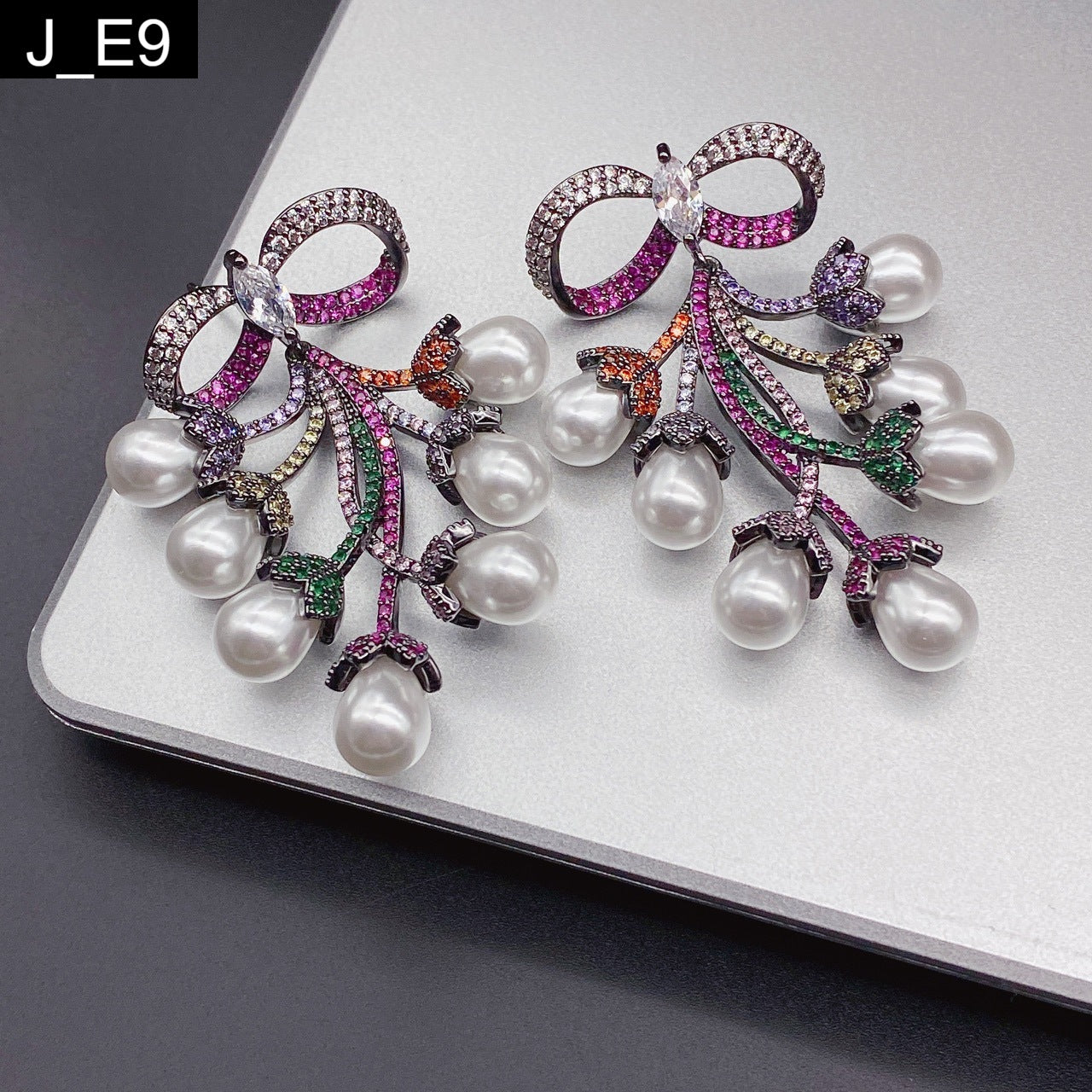 The Baroque Bouquet Drops: Opulence blooms in a dramatic, dazzling cluster. These statement earrings feature a sculpted ribbon bow stud that anchors a cascade of luscious, tear-shaped pearls. The intricate, branching vines holding the pearls are fully encrusted with dazzling pavé-set crystals. Available in two captivating styles: Classic White for timeless elegance, or a Vibrant Multi-Color array of pink, green, and orange crystals for a playful, show-stopping flair. These elaborate drops are designed to deliver maximum impact and luxurious movement with every turn of the head.