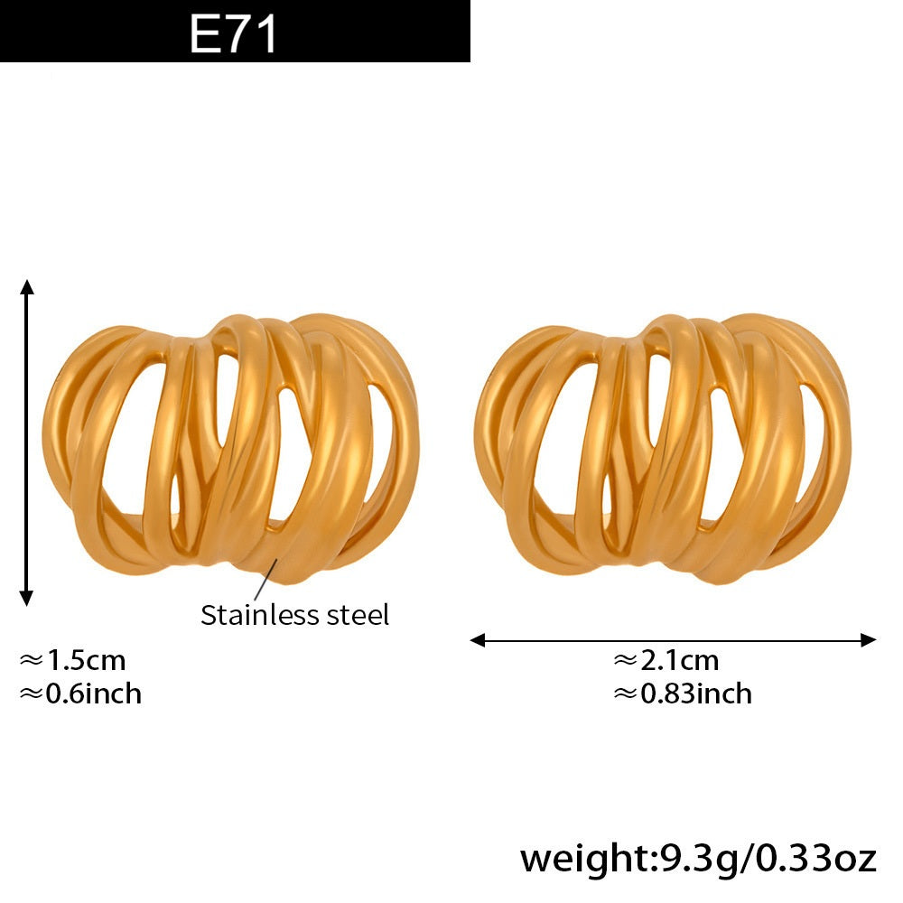 Chrome Basket Studs: A bold, sculptural earring that makes an artful statement. These unique studs are crafted with a three-dimensional, basket-like coil design made from smooth, polished metal. The tight, layered spiral creates both texture and surprising volume. Available in radiant gold and cool silver tones, these earrings hug the lobe while delivering a high-fashion, architectural edge. They are the perfect accessory for adding a touch of confident, contemporary chic to any look.
