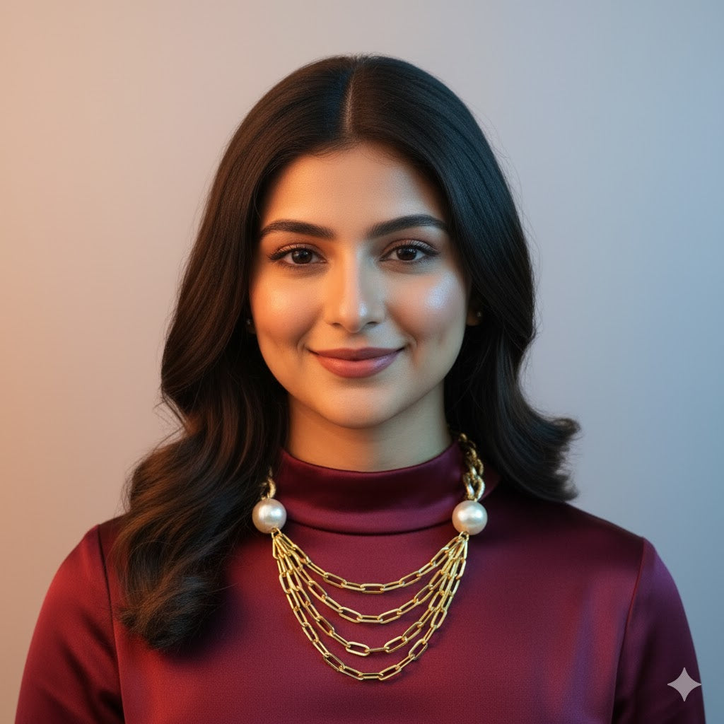 Coastal Drape Choker: A breathtaking piece that masterfully combines raw strength with delicate elegance. This striking necklace features a foundation of chunky gold-tone curb chains anchored by two prominent oversized faux pearls at the sides. Cascading between the pearls are three perfectly draped layers of polished paperclip chain, creating a stunning, fluid bib effect. This pre-layered piece is the ideal accessory for instantly transforming any neckline, adding a touch of bold, textural luxury and sophisticated glamour.