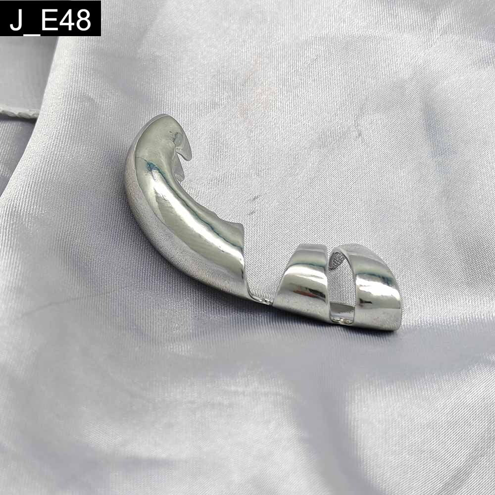 Cyber Claw Earcuff: A fierce, architectural accessory designed for those with bold style. This unique cuff features a striking, polished silver finish and a daring, serrated edge that curves around the ear or finger. The lower section consists of fluid, layered spiral bands, creating a striking contrast between the smooth, industrial curve and the sharp, protective points. It's the perfect statement piece to infuse any look with punk rock attitude, futuristic edge, and rebellious glamour.