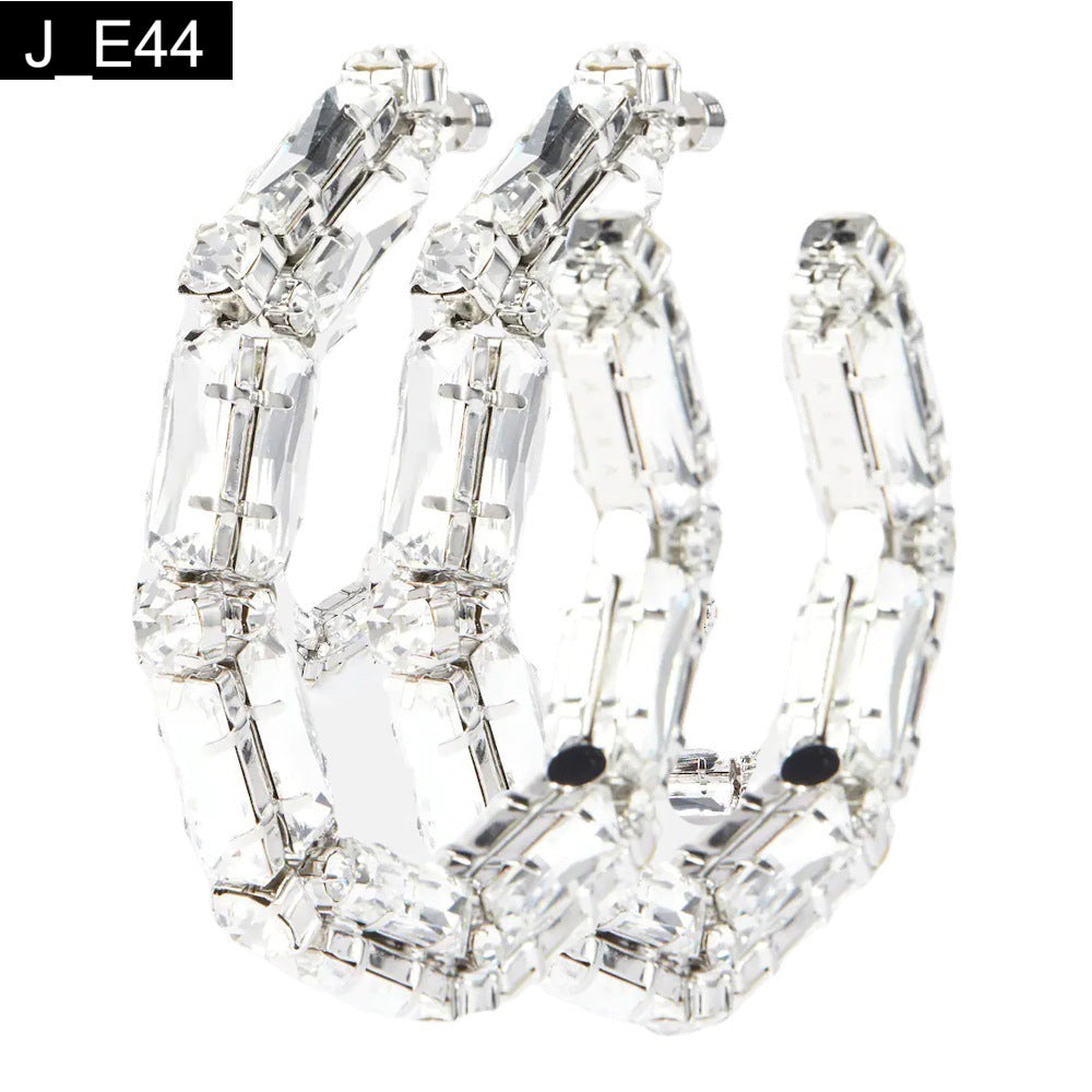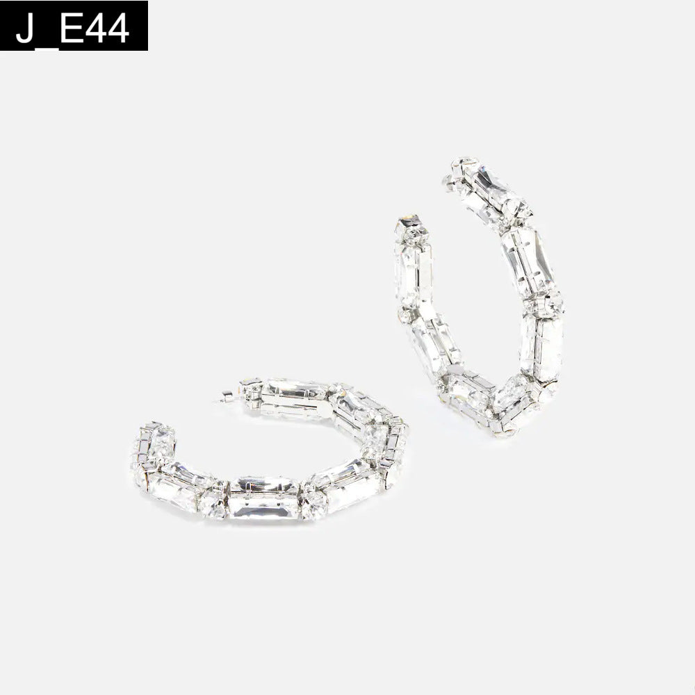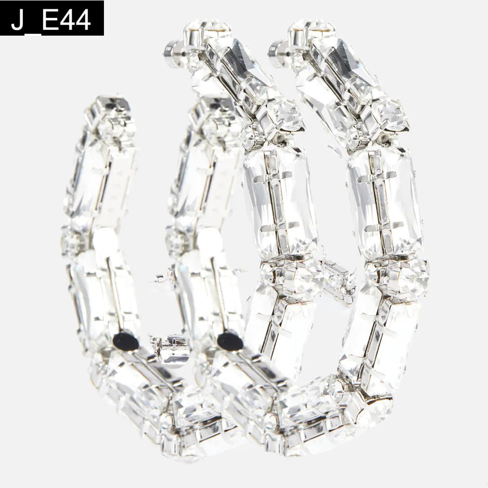 Glacier Hoops: The definitive statement earring for the confident fashion icon. These oversized, angular hoop earrings redefine glamour, featuring a bold, chunky silhouette completely paved with large, multifaceted, baguette-cut crystals. Set in an irregular pattern, the crystals catch the light from every direction, creating an intense, shimmering effect reminiscent of fractured ice. Perfect for red carpets, dramatic evening looks, or adding powerful sparkle to a simple black outfit, these hoops are guaranteed to turn heads. Maximum dazzle, zero apologies.