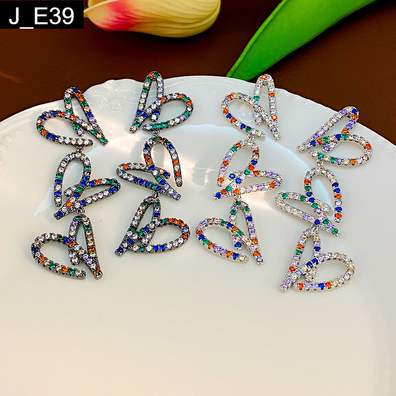 The Harlequin Love Lariat Drops: Vibrant sparkle and unforgettable movement. These striking drop earrings feature three interconnected, open heart silhouettes, each meticulously outlined in a dazzling array of multi-colored pavé crystals. Designed to catch the light, the long, cascading chain of hearts shimmers and sways with every turn of the head. These high-impact earrings are the perfect accessory for adding a touch of playful luxury and dramatic flair to your evening ensemble.