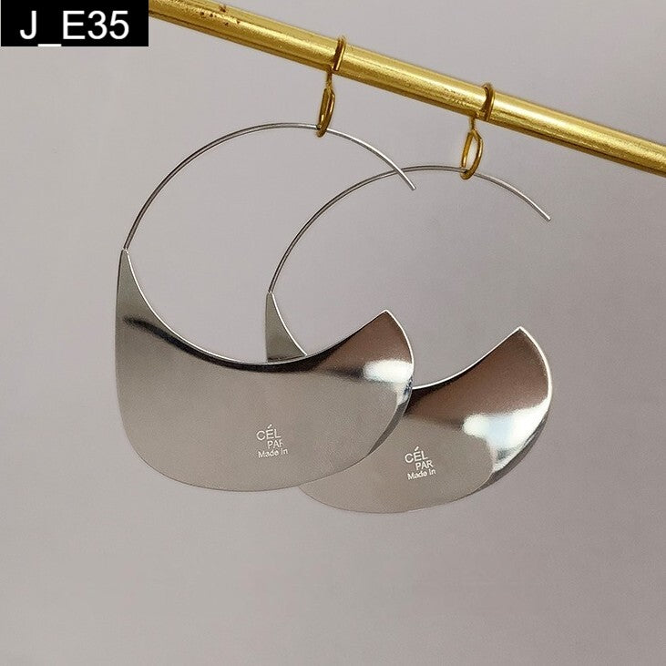 The Horizon Shield Hoops: Bold curves, effortless sophistication. These striking earrings redefine minimalist elegance with their unique, wide-set hoop design. Featuring a polished, sculptural metal body that sweeps gracefully into a crescent shape, they create a commanding presence without excess. The sleek, reflective surface catches light beautifully, offering a sophisticated sheen. Perfect for adding a modern, artistic edge, these hoops are available in both luminous gold-tone and contemporary silver-tone, making them a versatile statement piece for any fashion-forward individual.
