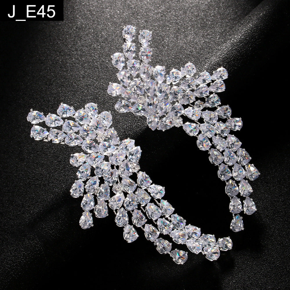Ice Spray Earring: A magnificent pair of statement earrings designed for maximum impact. These stunning pieces feature a dramatic, sweeping wing silhouette composed entirely of teardrop and marquise-cut crystals. The multi-tiered clusters are expertly arranged to create a cascade of brilliant light that climbs the ear and flares outward. Perfect for a bridal look, a formal gala, or an upscale evening event, these earrings provide an unparalleled level of glamour and sparkle. Illuminate the room with every turn of your head.
