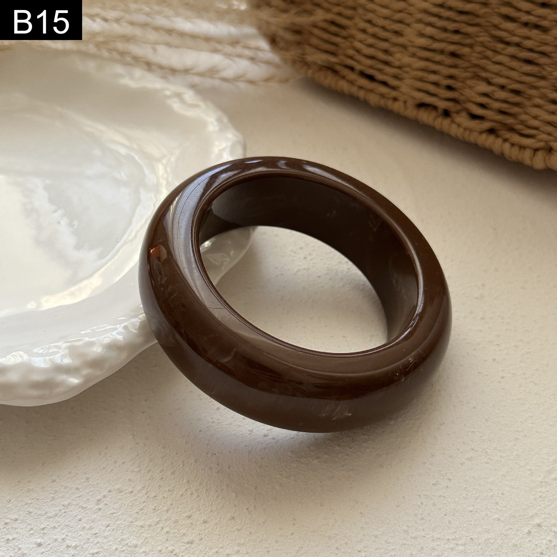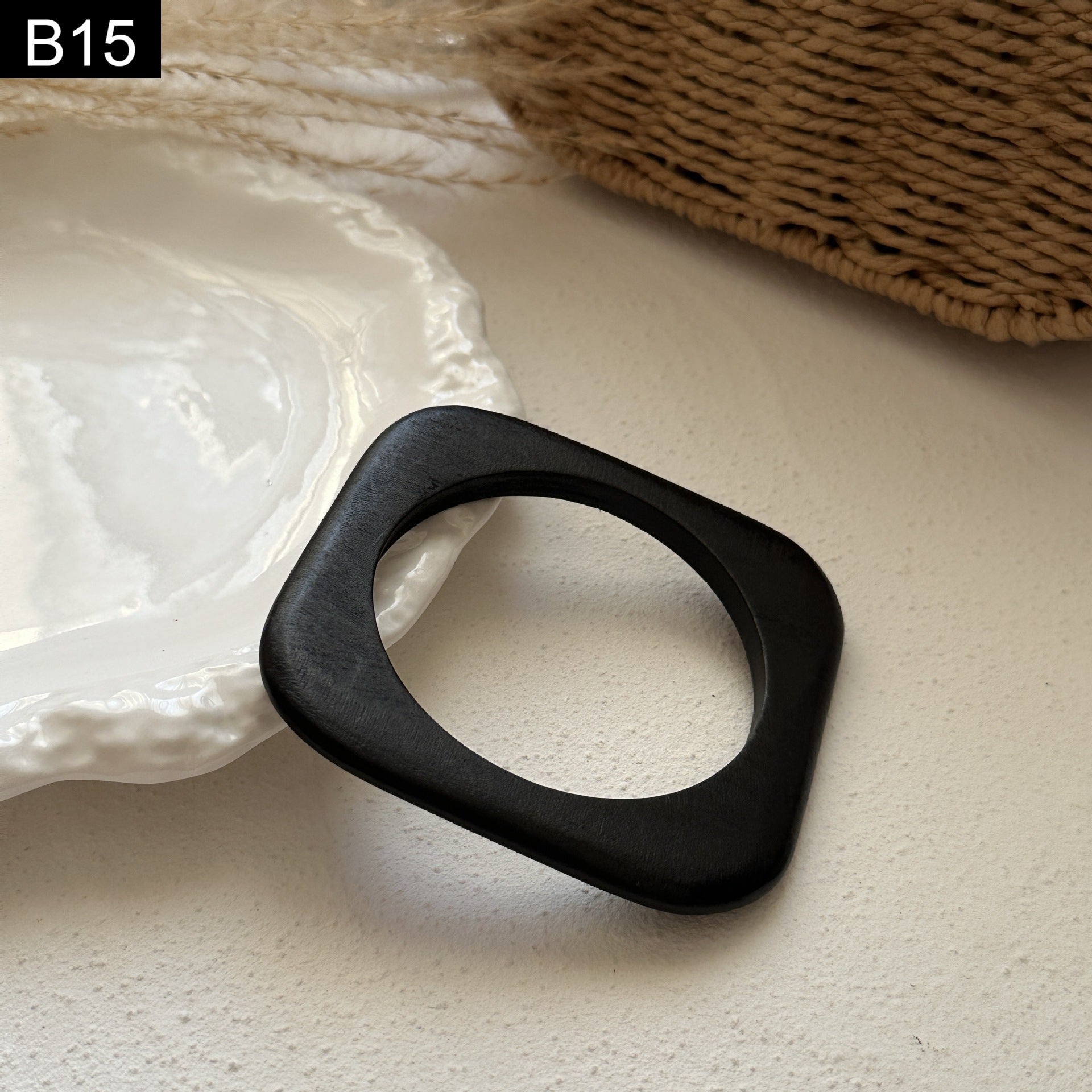 Safari Stack: The ultimate accessory set for a rich, bohemian-chic statement. This curated collection of four unique bangles is designed to be worn together, blending distinct textures and shapes: a chunky, hammered gold cuff forms the vibrant centerpiece; two bracelets feature smooth, glossy resin in deep mahogany and dark chocolate tones; and one adds a contrasting geometric edge with a matte black square bangle. This stack adds instant global glamour and textural depth to any outfit, from casual linen to intricate lace. Bold style, naturally layered.