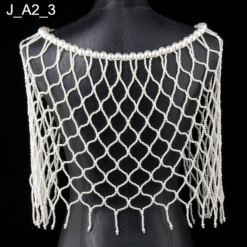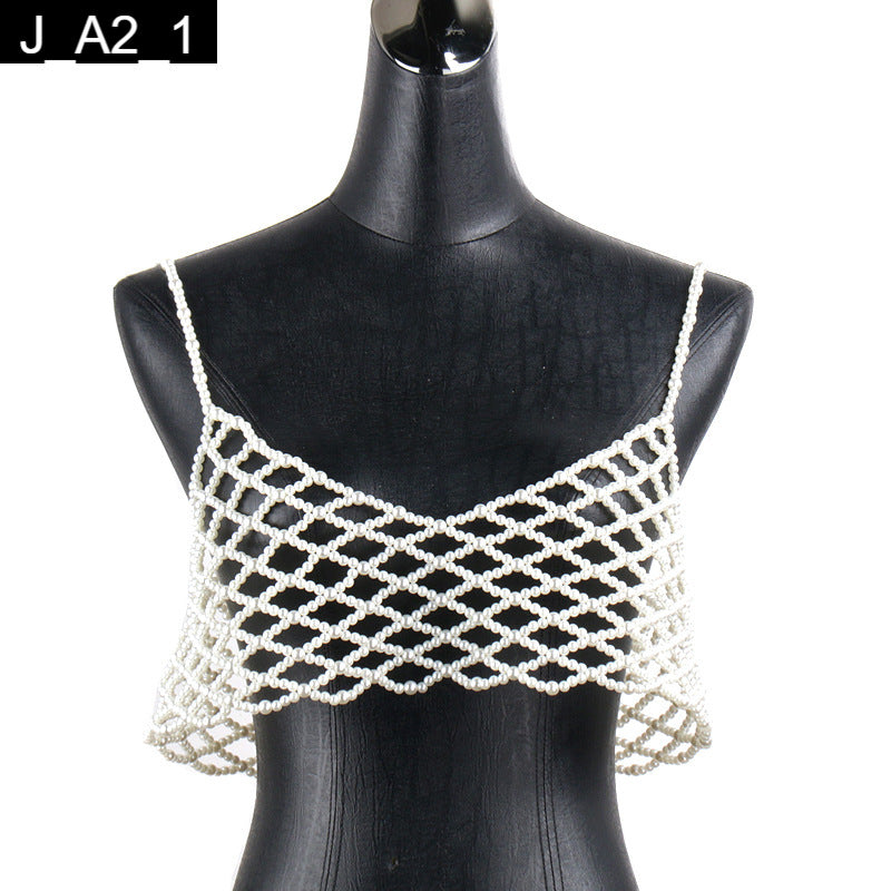 The Siren's Veil Collection: Dramatically drape yourself in pure luxury. This collection of statement body jewelry takes the timeless elegance of pearls and transforms it into wearable art. Crafted from thousands of lustrous faux pearls, these pieces are designed to be layered over evening wear, swimsuits, or lingerie for an unforgettable, opulent look.