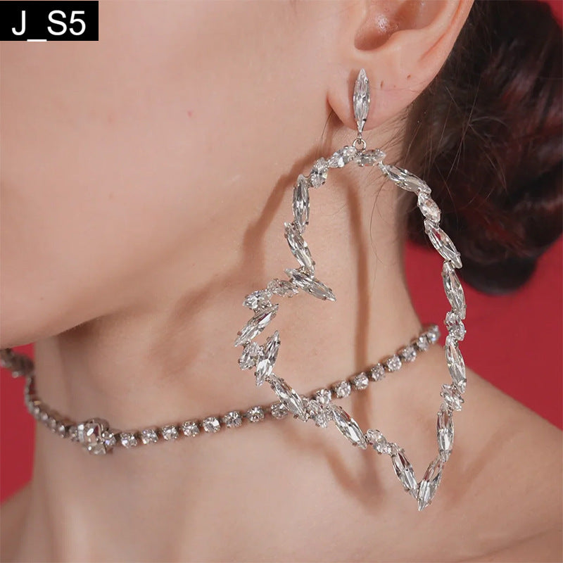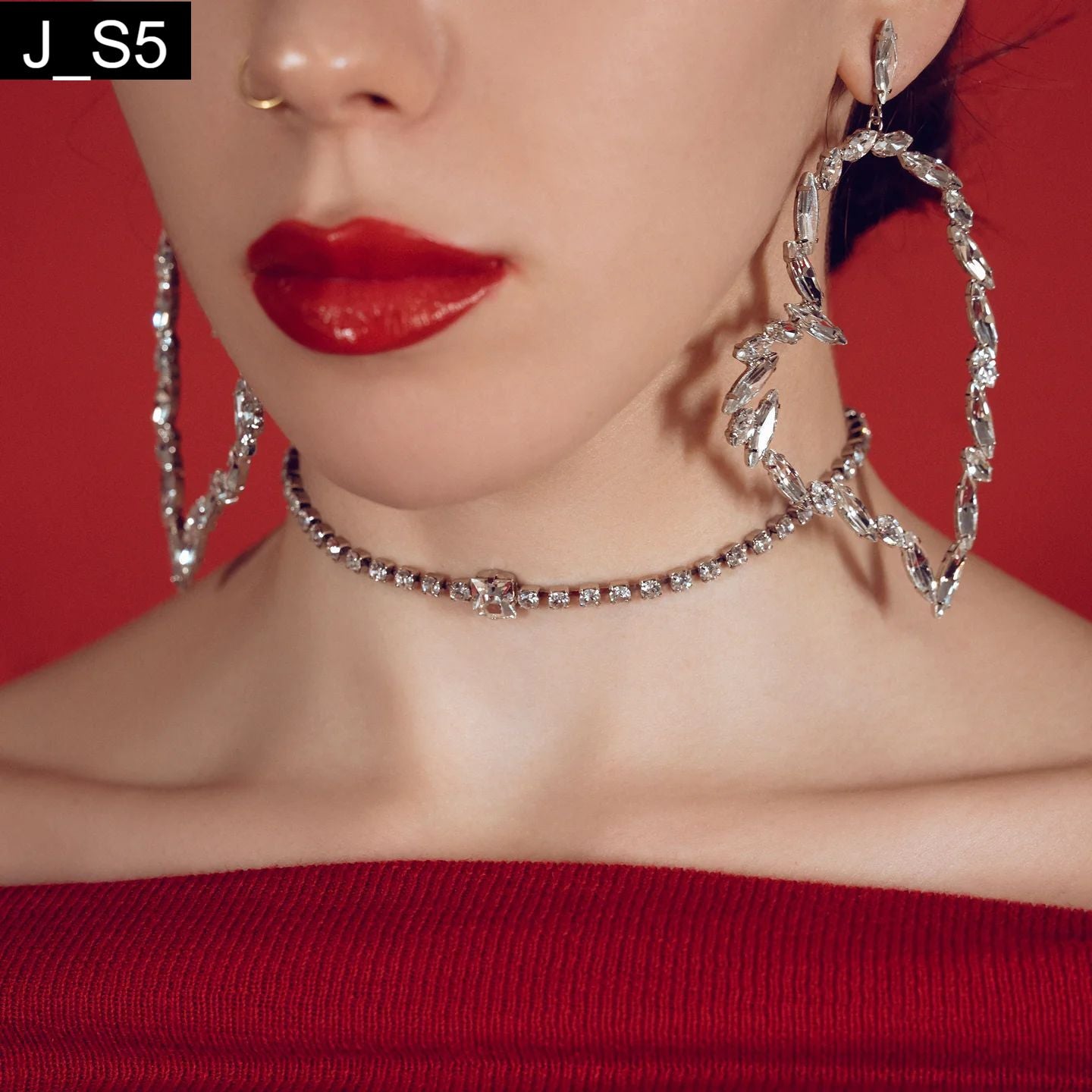Vixen Crush Set: Make an unforgettable statement with these avant-garde oversized drop earrings and choker set. These massive pieces feature a striking, deconstructed heart silhouette crafted entirely from brilliant, marquise-cut crystals. The stones are expertly set to form an angular, almost broken outline, delivering a look that is both deeply romantic and powerfully edgy. Lightweight enough for comfortable wear but dramatic enough for the runway, this set is the ultimate accessory for high-fashion events, parties, and anyone who wants to wear their heart—glittering and bold—on their ears. Love, redefined.